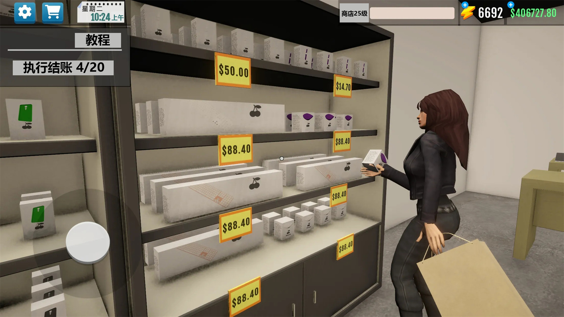 3、跟随游戏进程,解锁最新科技与产品,吸引更多顾客。